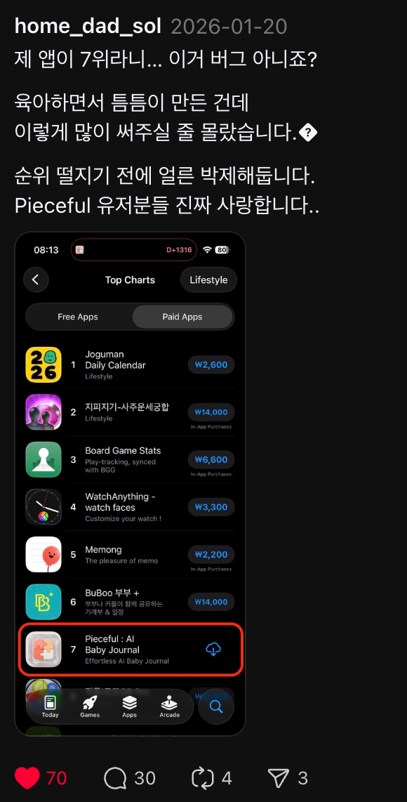 "여러분, 제 앱이 순위에 올랐어요!"