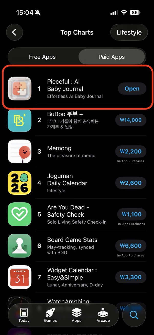 한국 앱스토어 라이프스타일 유료 앱 시장은 생각보다 경쟁이 치열하지 않았다.